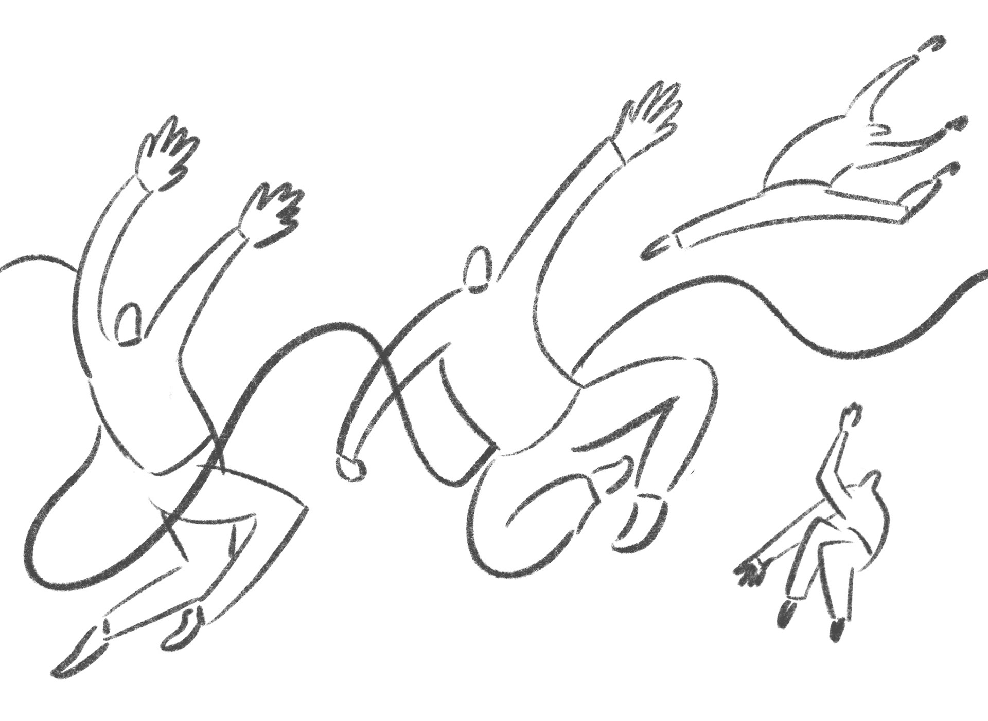 The greatest challenge of this piece came when I began sketching out the sequential movements of each dancer. To make the motion believable, every in-between drawing needed to respect the mechanics of dance – weight shifts, timing, and directional energy, – so that the character would arrive naturally into their intended pose, whether leaping, turning or landing.