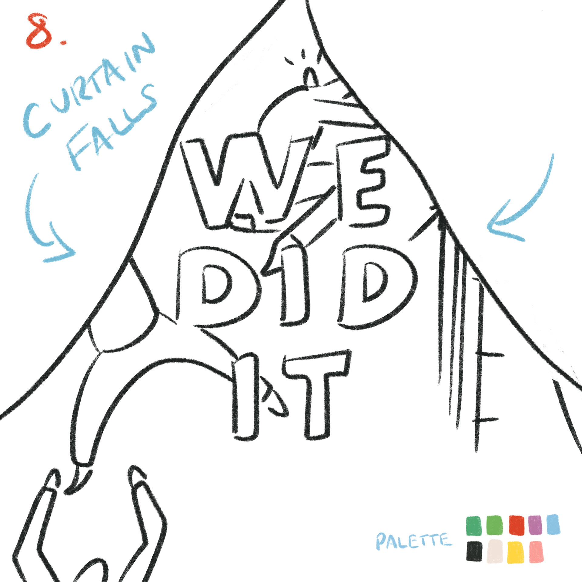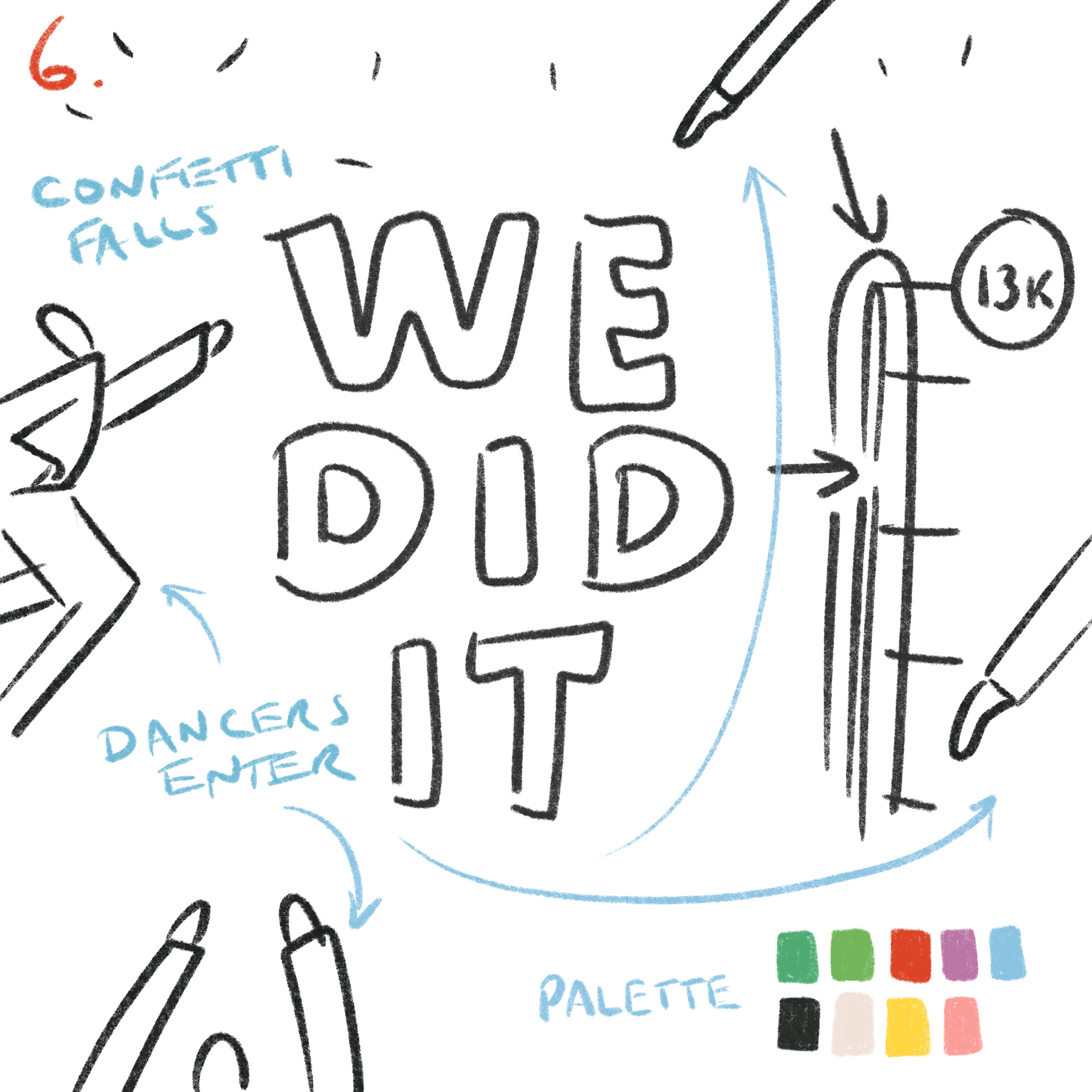 Before animating, I mapped out each scene in Procreate, exploring the story I was telling from frame to frame. My goal was to capture the viewer’s curiosity through the opening text sequences, then surprise them with the burst of fanfare and celebration that followed.